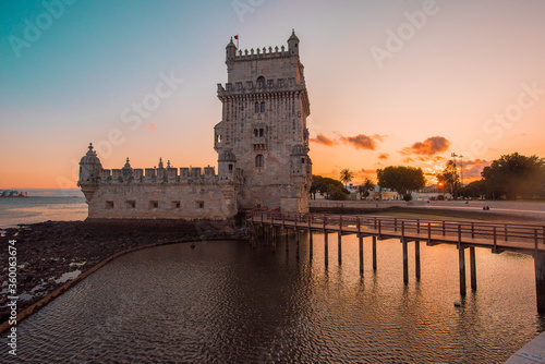 © Igas Studios , Fototapeta premium belem tower lisbon portugal at sunset