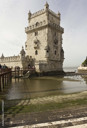 © greta gabaglio, Naklejka premium Belem Tower of Lisbon, Unesco world heritage, with people on the bridge