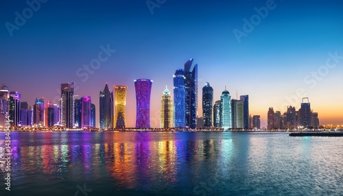 © Melvin, Fototapeta premium beleuchtete skyline in west bay doha katar