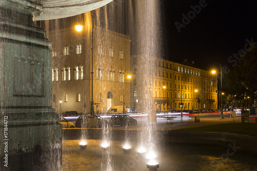 Fototapeta premium Beleuchteter Brunnen am Geschwister-Scholl-Platz in München