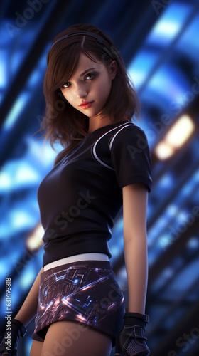 © Alexandre, Fototapeta premium beleza de anime, menina, abdômen magro, cabelo castanho escuro