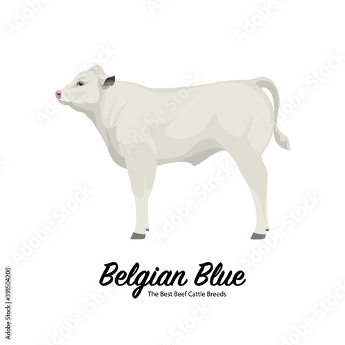 Naklejka premium Belgian Blue Calf - The Best Beef Cattle Breeds. Farm animals. Vector...