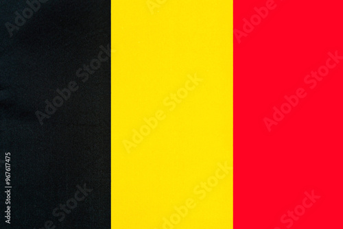 Fototapeta premium Belgian national flag with fabric texture close-up