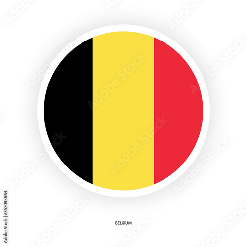Fototapeta premium Belgium circle flag icon with shadow on white background. Belgium circular...