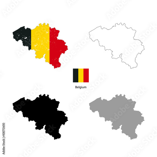 © EvgeniyBobrov, Obraz premium Belgium country black silhouette and with flag on background