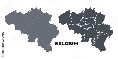 © Jayartiez, Naklejka premium Belgium grey political map simple flat illustration set