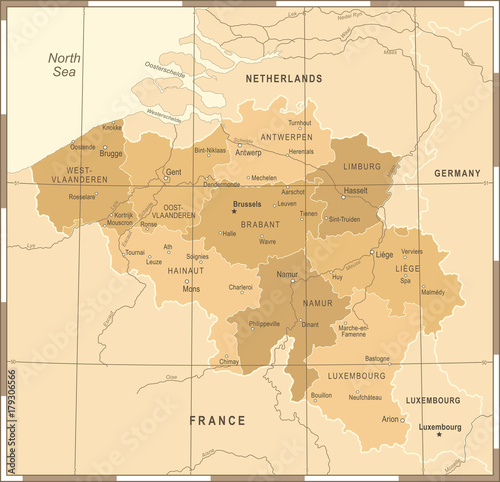 © Porcupen, Fototapeta premium Belgium Map - Vintage Vector Illustration