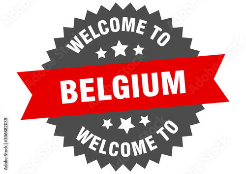 Obraz premium Belgium sign. welcome to Belgium red sticker