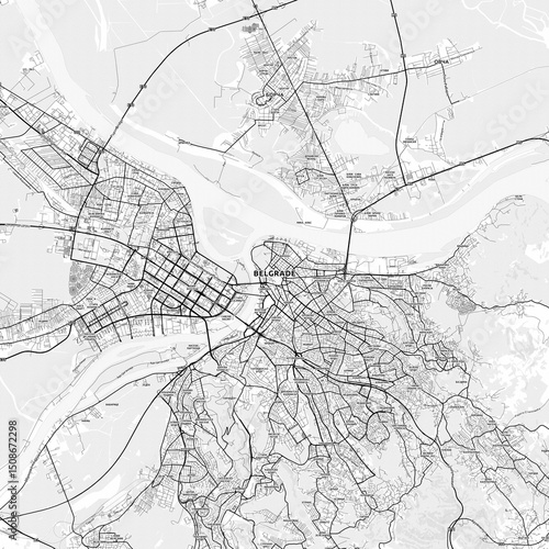 © Knut Hebstreit, Naklejka premium Belgrade Area Map with Labels and Neighborhoods - One color, minimalistic design