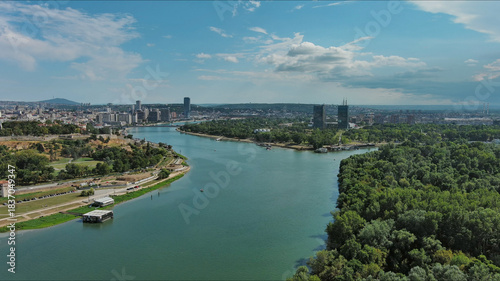 Fototapeta premium Belgrade Serbia isalnd and Sava and Danube rivers