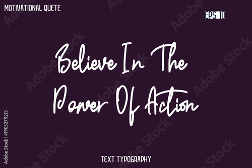 Obraz premium Believe In The Power Of Action -Cursive Typography Creative Lettering Vector Motivational Phrase