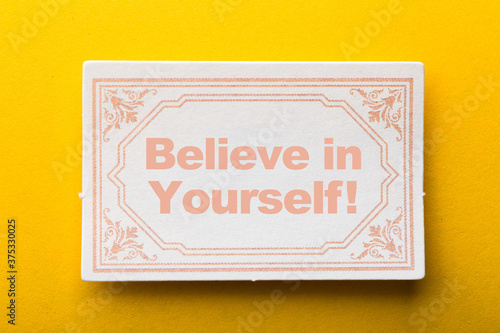 Obraz premium Believe In Yourself Frame Label On Yellow Background