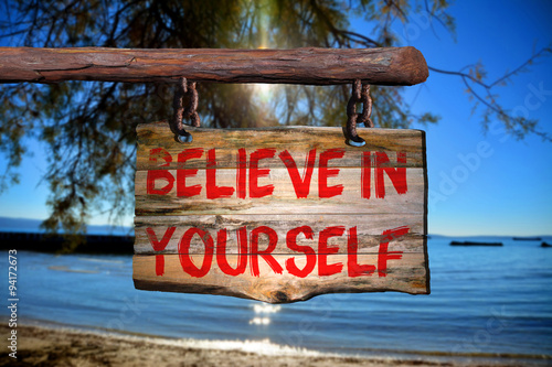 © xpix, Fototapeta premium Believe in yourself motivational phrase sign