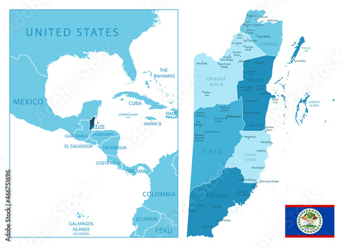 © gt29, Fototapeta premium Belize - highly detailed blue map.