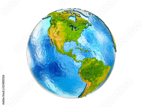 © harvepino, Naklejka premium Belize on 3D model of Earth with country borders and water in oceans. 3D illustration isolated on white background.