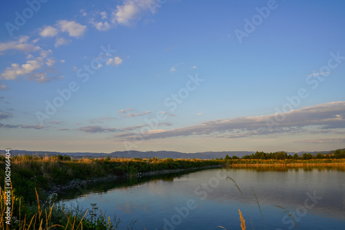 © Jasmien, Fototapeta premium Belizmata Dam with a backdrop of the Pirin Mountains, Bansko, Bulgaria