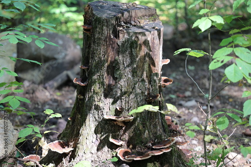 Obraz premium Belle scène d'une jolie souche remplie de champignons
