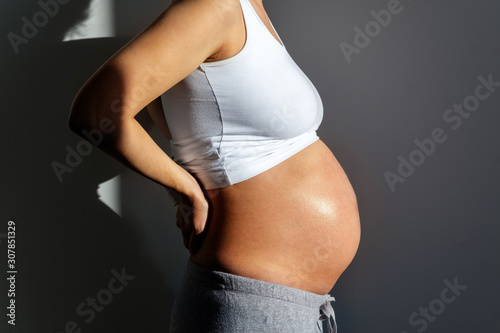 Fototapeta premium Belly of a pregnant woman close-up