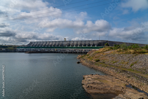 Naklejka premium Belo Monte dam on Xingu River. Hydroelectric Power Plant in Amazon rainforest in Altamira city, Para, Brazil. Concept of environment, ecology, nature, deforestation, energy, renewable, sustainable.