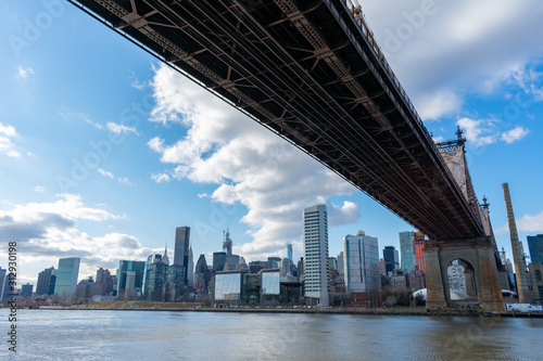 Fototapeta premium Below the Queensboro Bridge along the East River with the Midtown Manhattan...