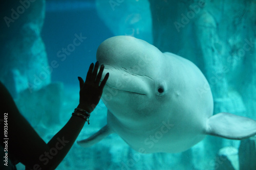© teninopia, Fototapeta premium Beluga comunicandose con un humano