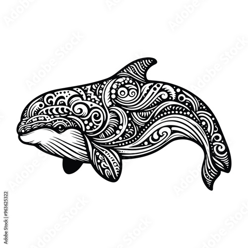 © Cici, Fototapeta premium Beluga in zentangle art, stencil logo, black and white animal illustration
