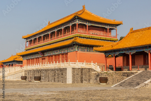 © Matyas Rehak, Naklejka premium Belvedere of Embodying Benevolence in the Forbidden City in Beijing, China