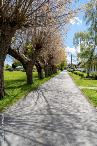 © Elena Sistaliuk, Obraz premium bench in a summer garden, the rays of the sun