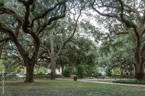 © dbvirago, Fototapeta premium Benches Under Old Oak Trees