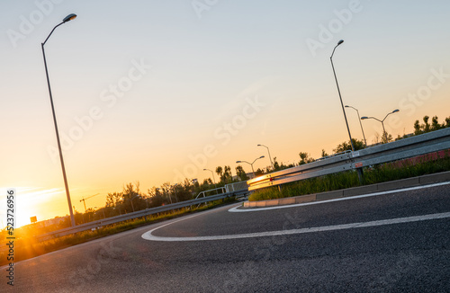 © Mike Mareen, Fototapeta premium bend in the asphalt road during sunset