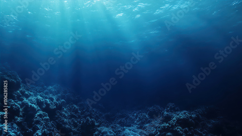 © Ula, Fototapeta premium Beneath the Waves: Exploring the Depths of Tranquil Blue Waters in a Serene Underwater World