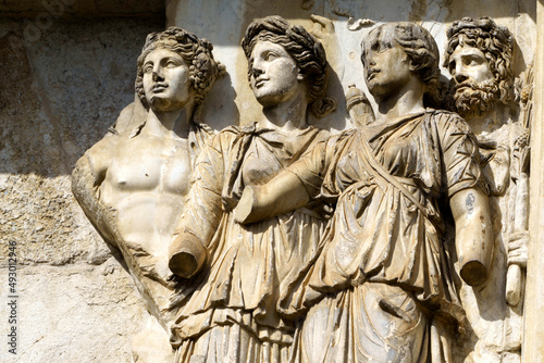 © Claudio Colombo, Obraz premium Benevento: Arco di Traiano, Roman arch, at morning
