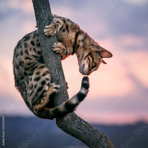 © Andreas Krappweis, Obraz premium Bengal Cat Acrobat on Tree