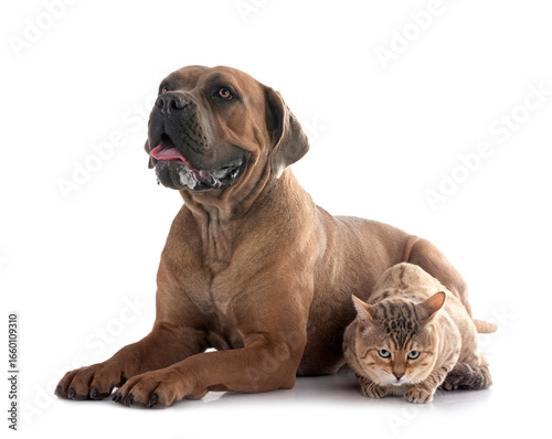© cynoclub, Fototapeta premium bengal cat and cane corso in studio