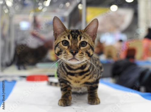 © fifg, Naklejka premium Bengal cat at cat show in Moscow.