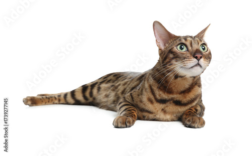 Fototapeta premium Bengal cat isolated on white. Beautiful pet