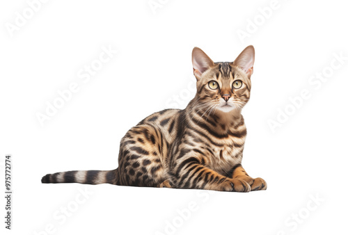 © Minimal Blue, Obraz premium Bengal Cat Lying On A Transparent Background Looking Forward