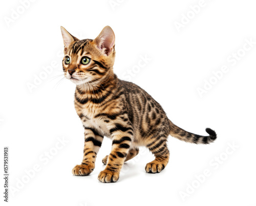 © OlehStock, Obraz premium Bengal kitten posing on white background