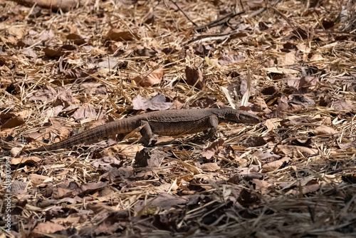 Fototapeta premium Bengal monitor, Varanus bengalensis, lizard walking in India