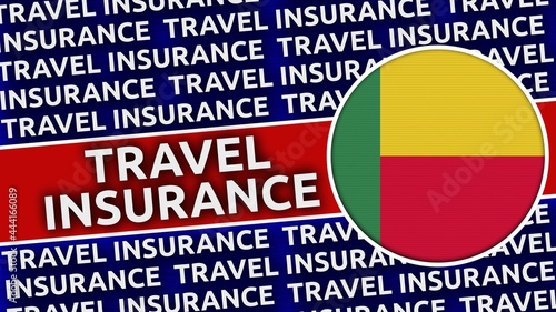 © MotionCenter, Fototapeta premium Benin Circular Flag with Travel Insurance Titles - 3D Illustration