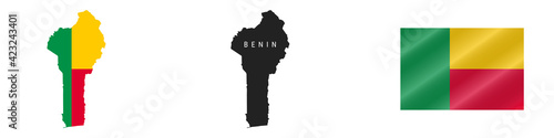 © Ivan Burchak, Fototapeta premium Benin. Detailed flag map. Detailed silhouette. Waving flag. Vector illustration