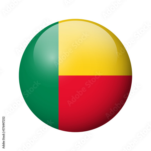 © pyty, Fototapeta premium Benin flag - glossy circle badge. Vector icon.