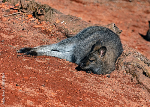© Mikhail Blajenov, Naklejka premium Bennett`s wallaby on the ground. Latin name - Macropus rufogriseus