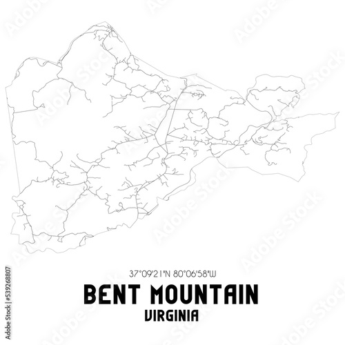 Obraz premium Bent Mountain Virginia. US street map with black and white lines.