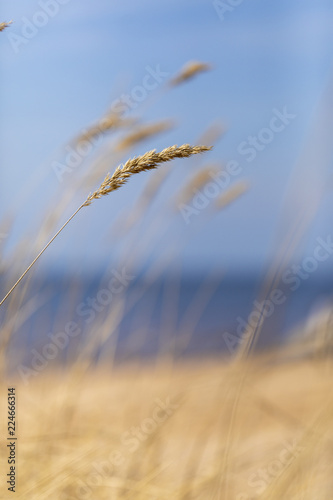 © Janisphoto, Fototapeta premium Bents on a beach of the Baltic Sea with a blue sky