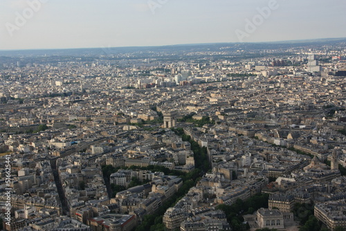 Fototapeta premium Überbick über Paris mit l'Arc de Triomph (Triumpfbogen) im Zentrum, welches...