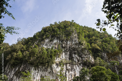 © chrisre, Obraz premium Berg mit Höhle im Regenwald in Mulu, Borneo