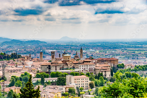 Obraz premium Bergamo Old Town cloudy mist panorama