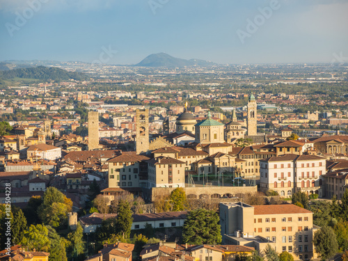 Naklejka premium Bergamo. One of the beautiful city in Italy. Lombardia. Landscape on the old city from Saint Vigilio