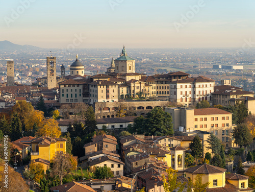 Fototapeta premium Bergamo. One of the beautiful city in Italy. Morning landscape at the old town from Saint Vigilio hill during fall season